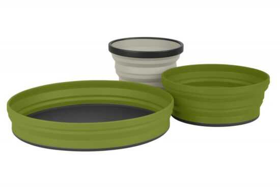Třídílná sada se skládá z X-Mug, X-Bowl, X-Plate a Ultra-Sil® Storage PouchX-Mug: skládací hrnek, objem: 480 ml X-Bowl: skládací miska, objem: 650 ml X- plate: skládací talíř, objem: 1170 mlCelý set je vyroben ze zdravotně nezávadného silikonu a odolává teplotám -40 až 180°C. Jde jednoduše složit do 15 mm vysoké placky, což se perfektně hodí na cesty.