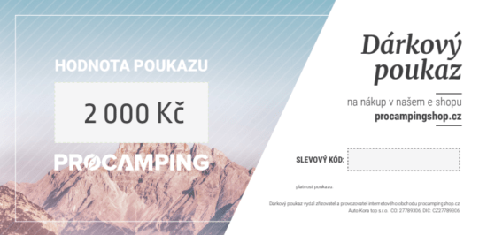 Dárkový poukaz 2 000 Kč od skvělé značky Procamping lze pořídit u nás za příznivou cenu. Není důvod váhat, dokud je zboží skladem.