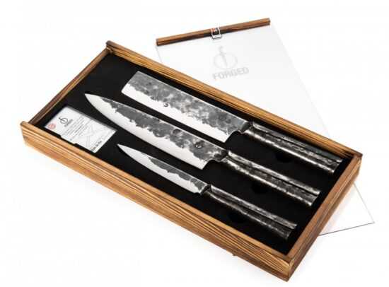 Holandská značka FORGED představuje speciální a nápaditou kolekci nožů. Díky kvalitnímu provedení, krásnému balení a tradičnímu řemeslnému způsobu výroby zaplesá nejedno srdce milovníka nožů. Nože jsou vyráběny kompletně ručně z japonské oceli a zabalené do elegantní krabice z páleného dřeva. Ruční výroba, kovářské řemeslo a kvalitní zpracování činí z každého nože jedinečný a vysoce kvalitní produkt.
