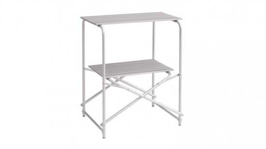 Snadno použitelná, lehká a robustní kuchyňská linka se dvěma policemi je ideální pro minimalistické kempaře v menších stanech, dodávkách a obytných vozech.