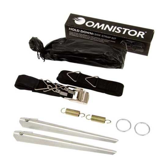 Velmi důležitý doplněk markýzy. Sada se skládá z popruhu, pružiny a 2 kolíků. První ráz poryvu větru zachytí pružina. Při velmi silném větru musíte markýzu ale svinout.
