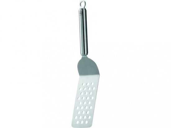 Nerezová obracečka na burgery usnadňuje otáčení burgerů na litinové desce a její děrované provedení zaručuje odvod přebytečného tuku a šťávy. Kulatý tvar rukojeti zajišťuje příjemnou manipulaci.